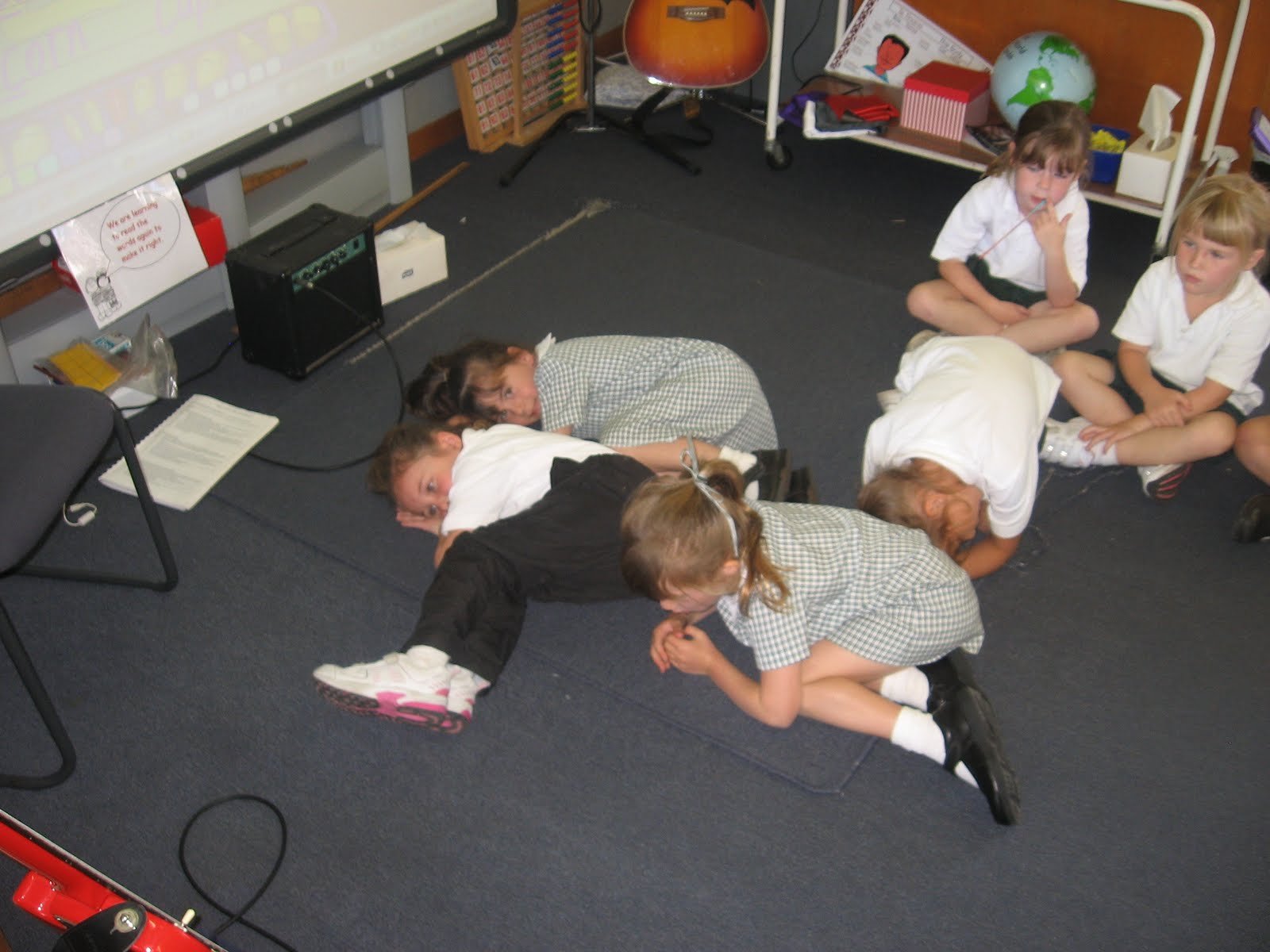 After a bit of housekeeping and such like, we acted out the shared book One Cold Wet Night, doubling up the characters so that everyone had a part to play.